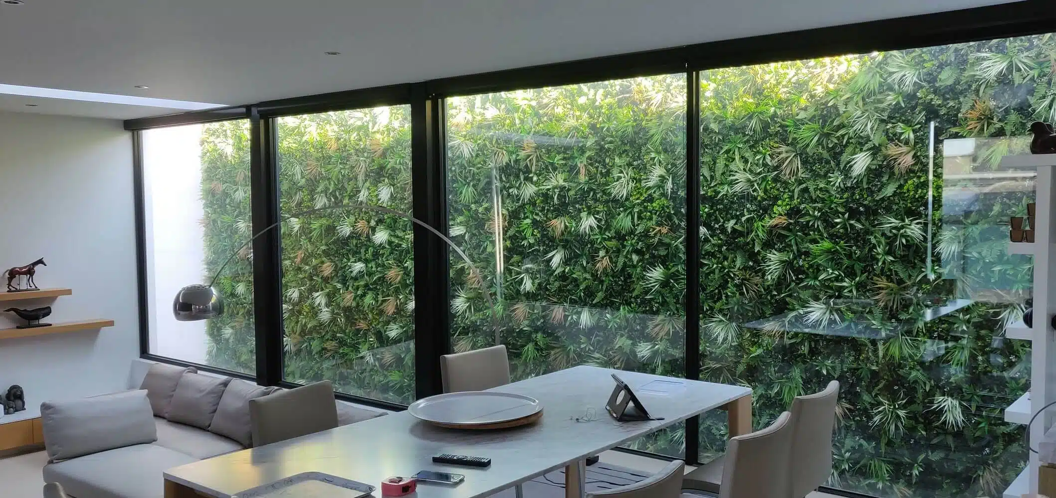 These beautiful and exotic panels are perfect for indoors or out, and super easy to install. Interlocking panels fit any size area. Alternatively, they can be cut along the grid and the back to make them as small as you desire. Due to the lush nature of the vertical garden they are more fragile than some of the other screens, and you may need to cable tie on the stems (grasses, and branches) in high wind areas.